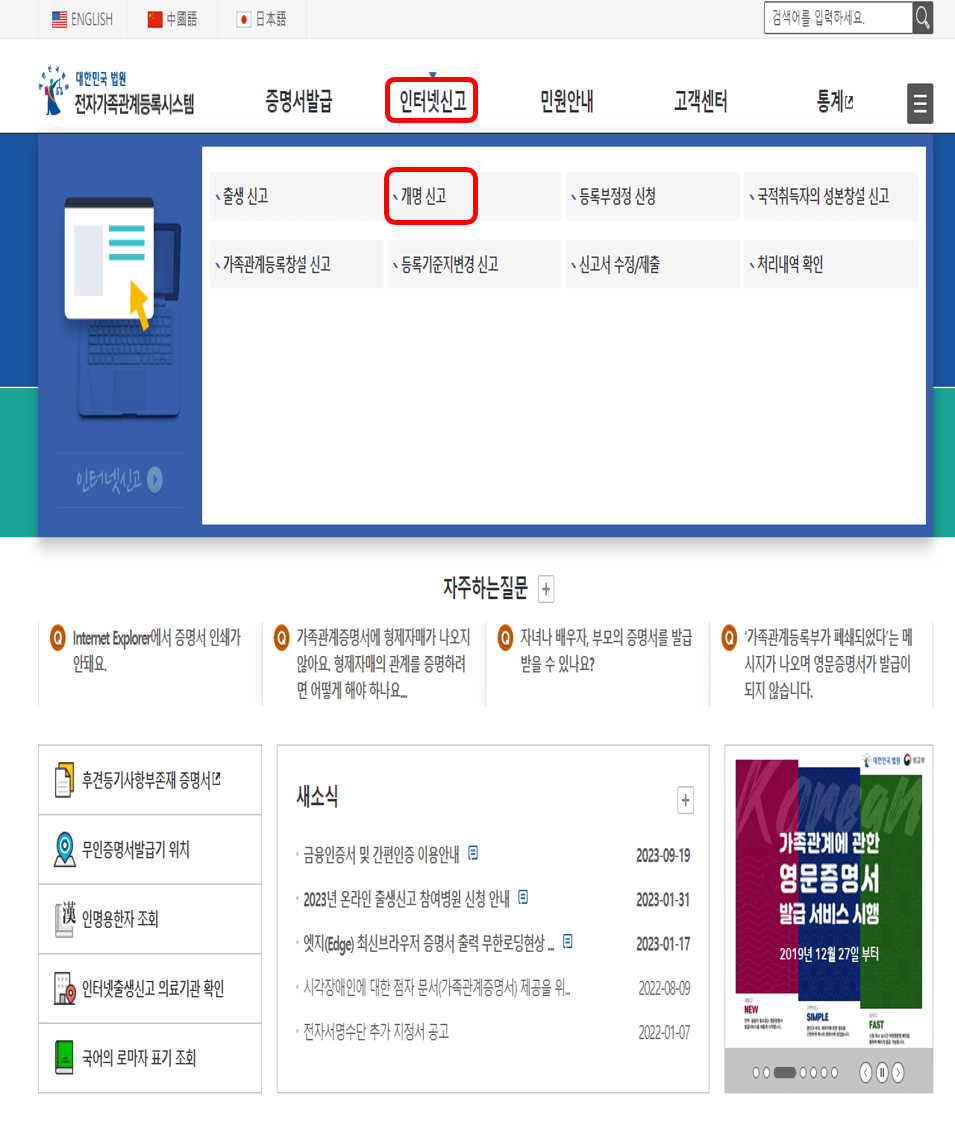 개명, 인터넷으로 10분이면 신청 가능!