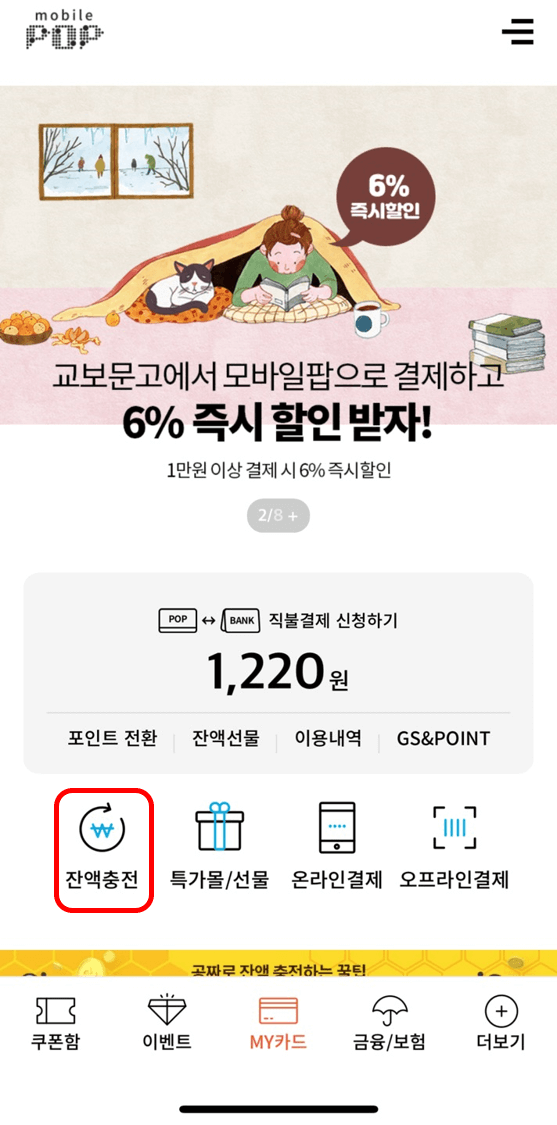 그럼 모바일팝이 무엇이냐? GS 편의점에서 팝카드에서 들어보셨을텐데요, 같은 계열의 휴대폰 어플이라고 생각하시면 됩니다. 팝카드가 없어도 간단하게 어플을 설치하시면 누구나 할인 받을 수 있습니다. 인터넷 교보문고에서 모바일팝으로 결제 시 1만원 이상이면 6%가 즉시 할인됩니다. 이 혜택이 왜 좋냐하면 다음과 같은 이유들 때문입니다.