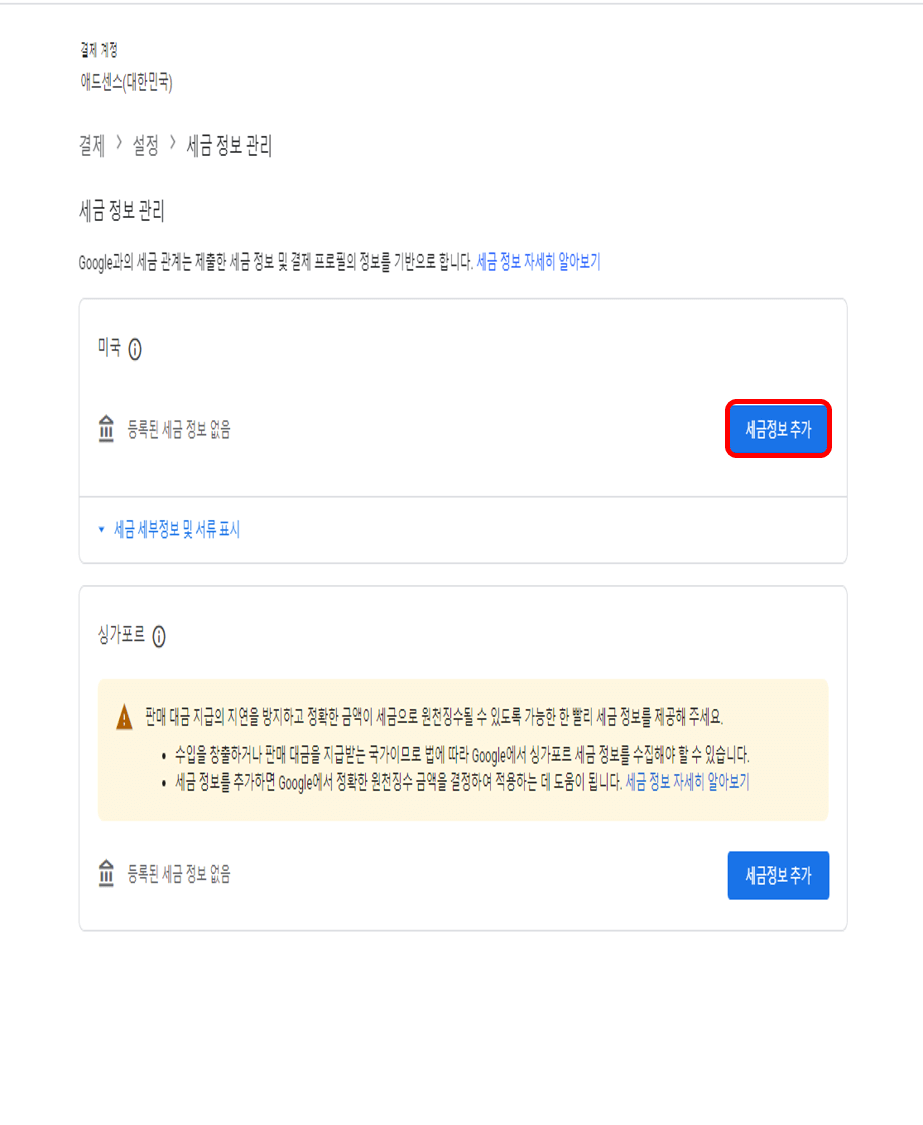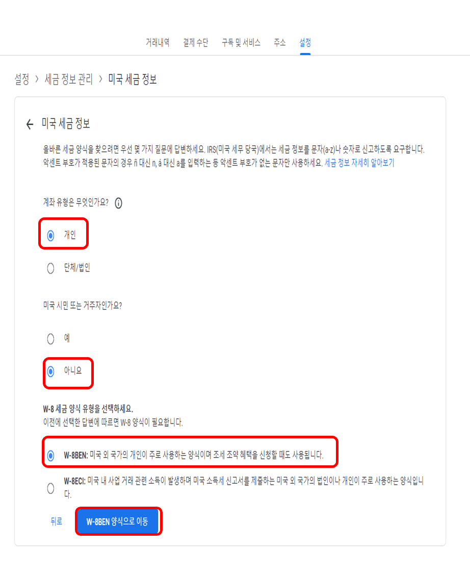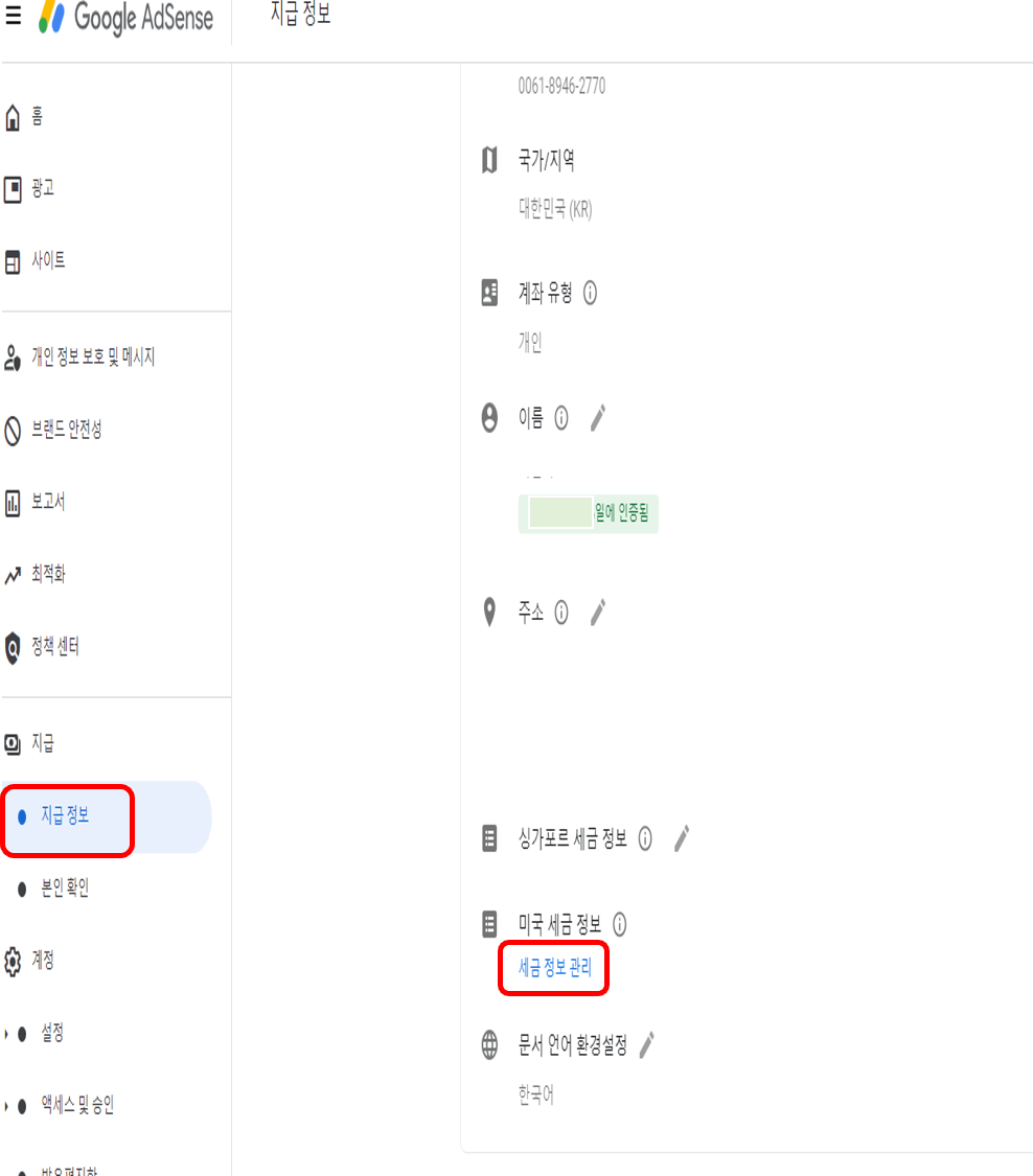 구글 애드센스 미국 세금정보 입력 절차
