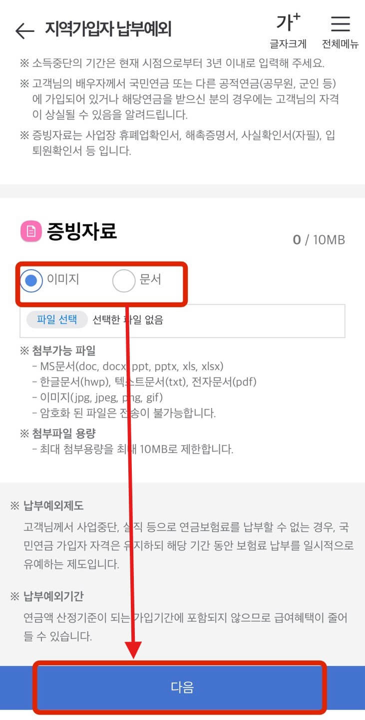 납부예외 대상 증빙서류
