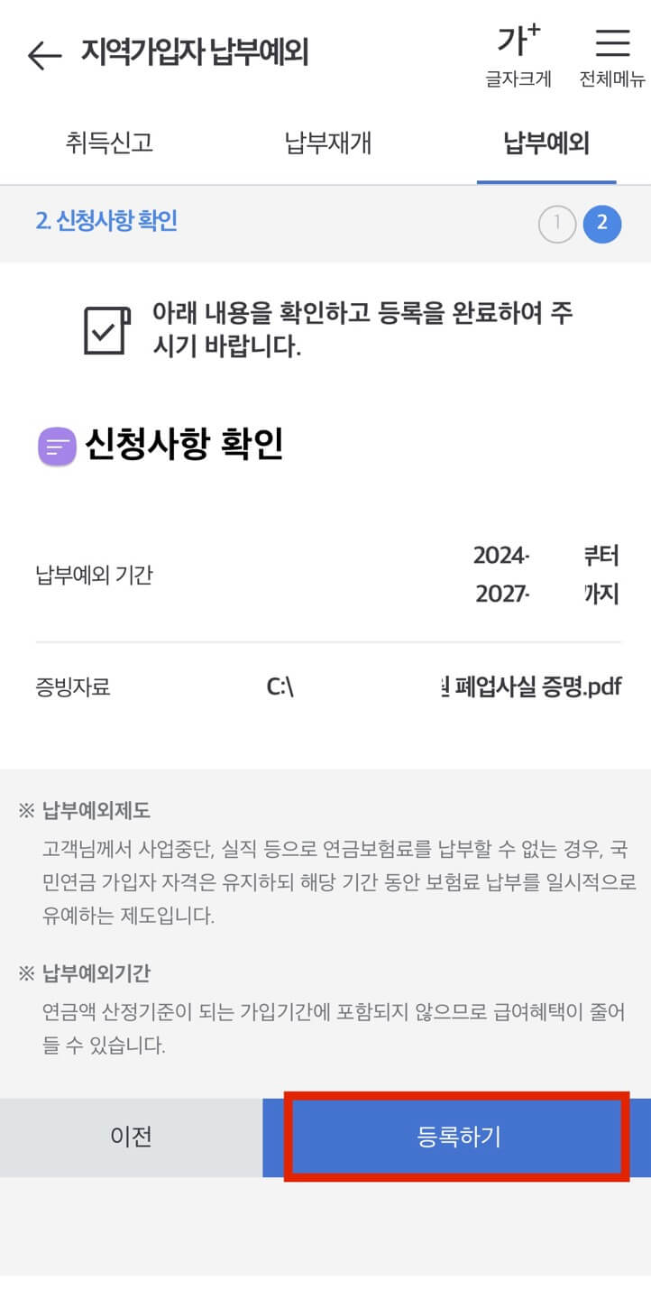 2. 국민연금 납부예외 처리결과 확인방법
