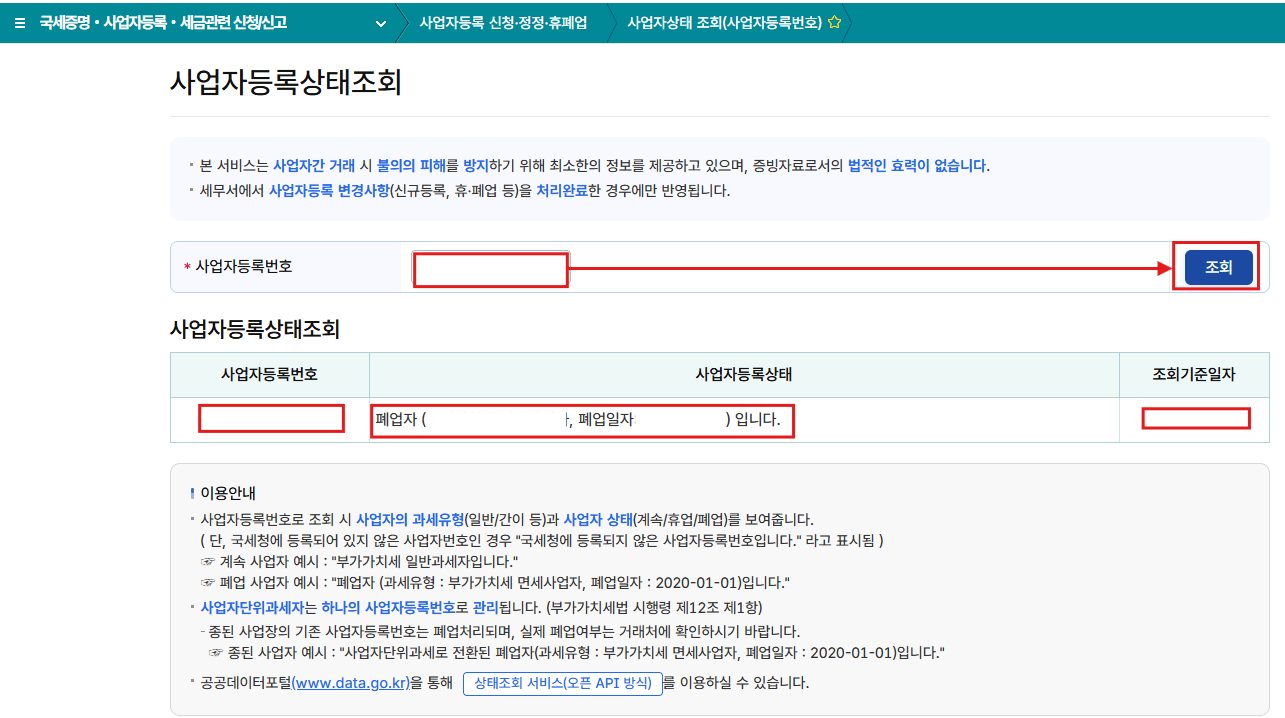 폐업신고는 했지만 완료가 되었다고 별도의 연락이 오는 것은 아닙니다. 그러다 보니 처리가 완료되었는지 궁금할 텐데요, 이때 확인방법은 다음과 같습니다. 방법은 두 가지인데요, 하나는 민원처리결과로 확인할 수 있고, 다른 하나는 사업자등록번호로 확인하는 방법입니다.