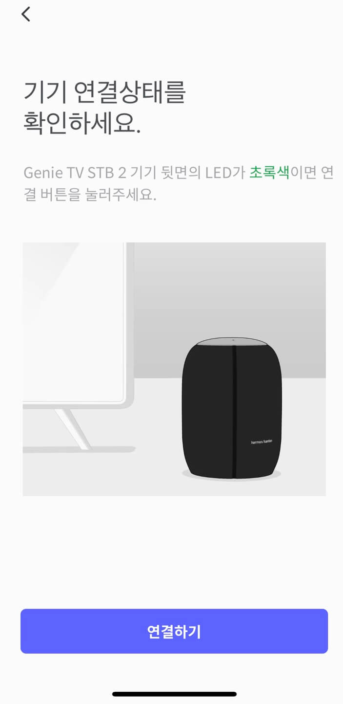 기가지니 어플화면에 여러개의 지니들이 나타나는데, 본인 가정에 설치되어 있는 아이랑 똑같이 생긴 애를 고르면 됩니다. 왼쪽과 같은 화면에서처럼 기가지니 뒤에 녹색불이 나타나면 어플에서 [연결하기]를 클릭합니다.