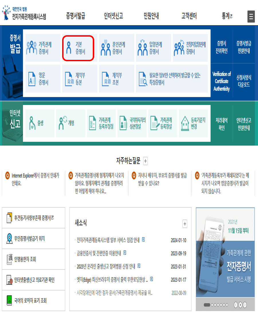 기본증명서 상세 발급방법