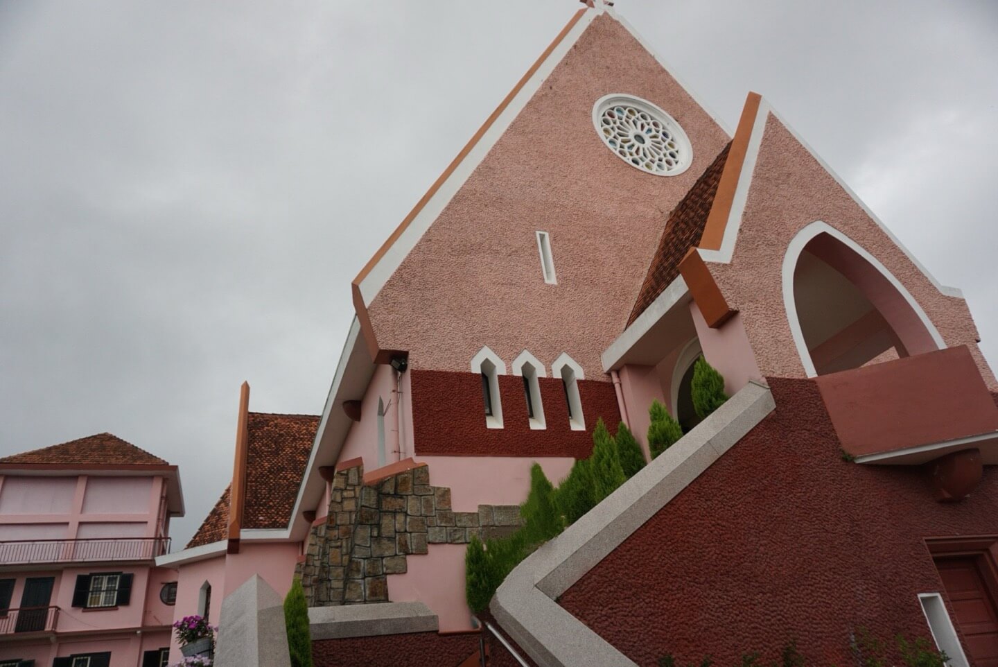 달랏 대성당은 핑크색으로 지어진 건물이라는 점이 특이해서 경유지로 선택된 것 같습니다. 베트남의 많은 성당들이 핑크색 벽돌로 지어졌는데, 이 도멘드마리 성당도 마찬가지입니다. 외관 색깔이 핑크라 특이하다는 것 외에 특별한 점은 없었으며 예쁘게 찍은 사진 한 장으로 방문한 것 기억을 간직하면 되겠습니다.