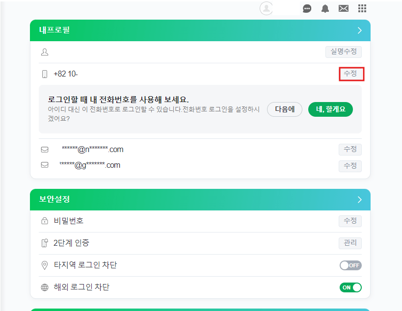 네이버 ID 전화번호 변경방법