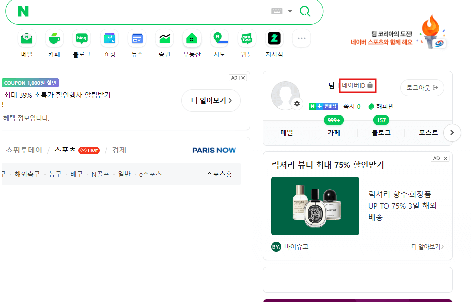 당연한 이야기지만 일단 네이버 ID를 변경하기 위해서는 네이버 홈페이지에 접속해야겠죠.