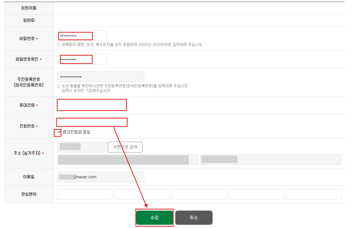 소유자의 주소가 변경되었을 경우에도 동물보호정보시스템에서 간단하게 변경할 수 있습니다.