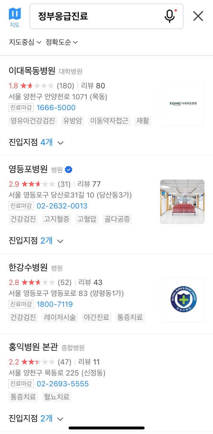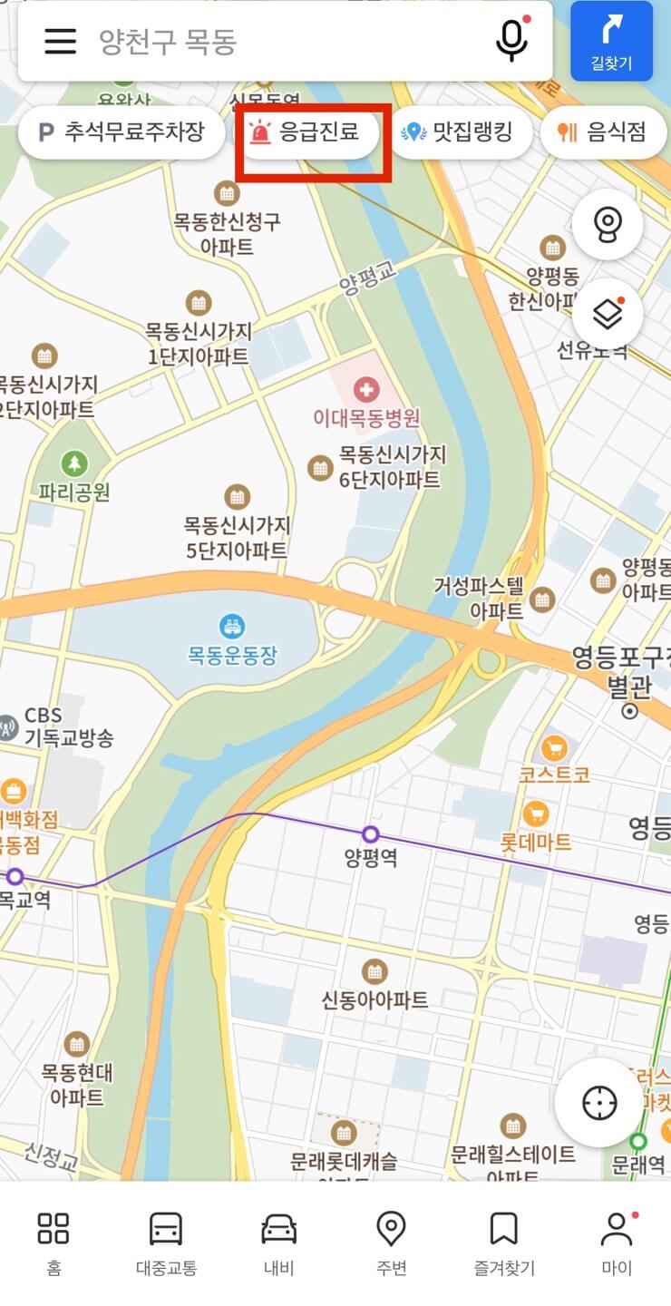 카카오맵을 활용한 명절 응급 병원 확인
