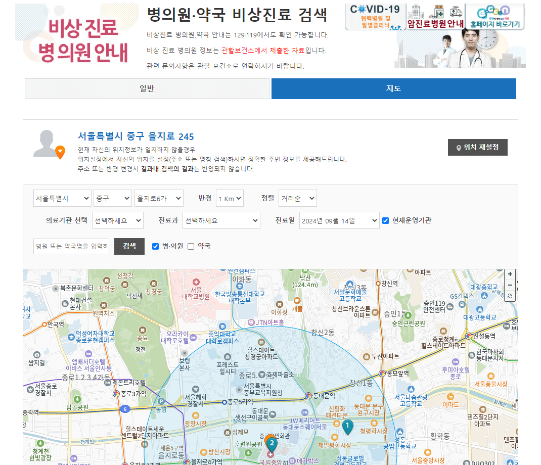응급의료포털 활용하여 명절 응급 병원 찾기