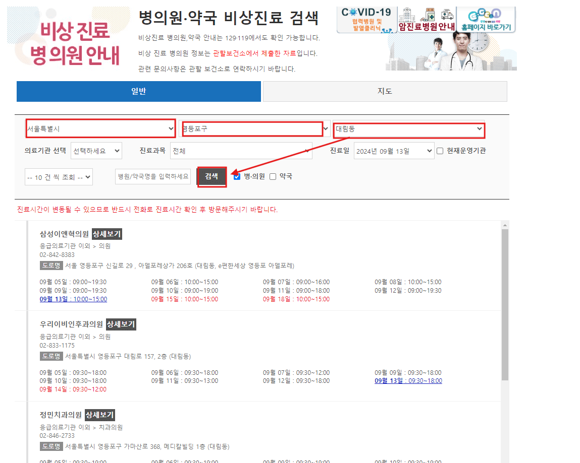 응급 진료 병원 확인