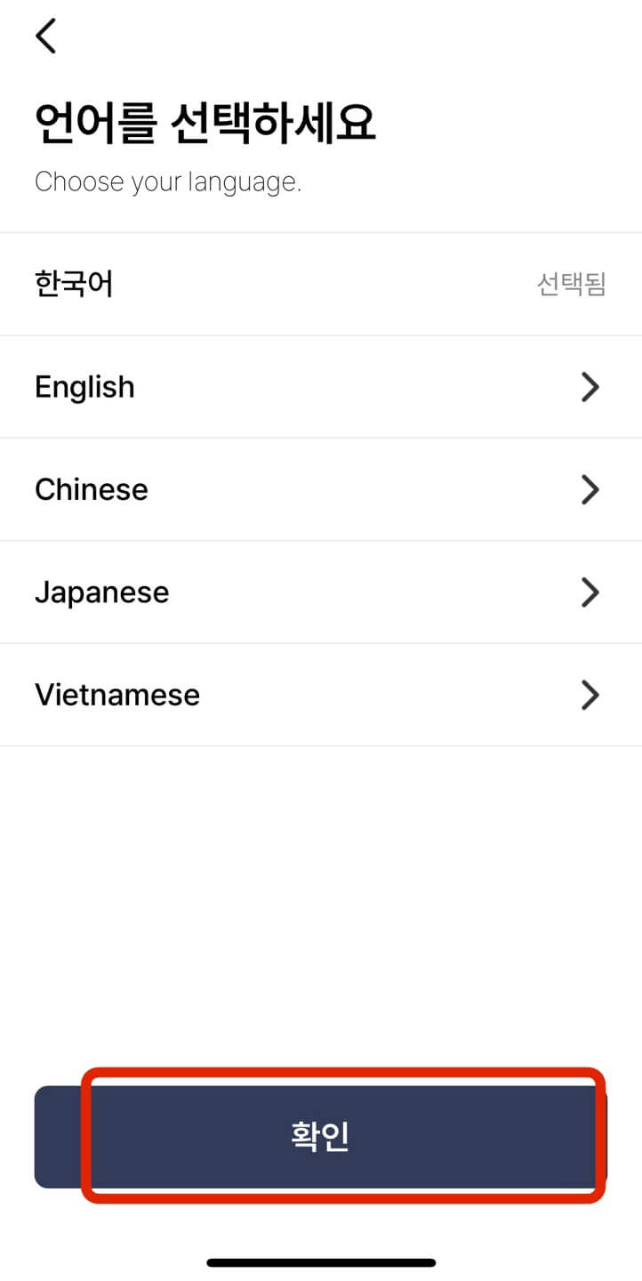 메인 화면에서 개인이면 [개인입니까?] - 맞냐는 질문에 [확인] - 언어 선택이 기본 한국어로 설정되어있으니 [확인]을 차례로 누릅니다.
