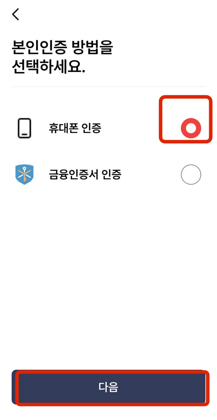 본인확인 인증에 대한 설명에 [확인] - 본인인증 방법은 원하는 방법을 선택 후 [다음]을 차례로 누릅니다. 이어지는 본인 확인을 진행하면 인증을 완료했다는 메시지가 표기되며 [확인]을 누릅니다.