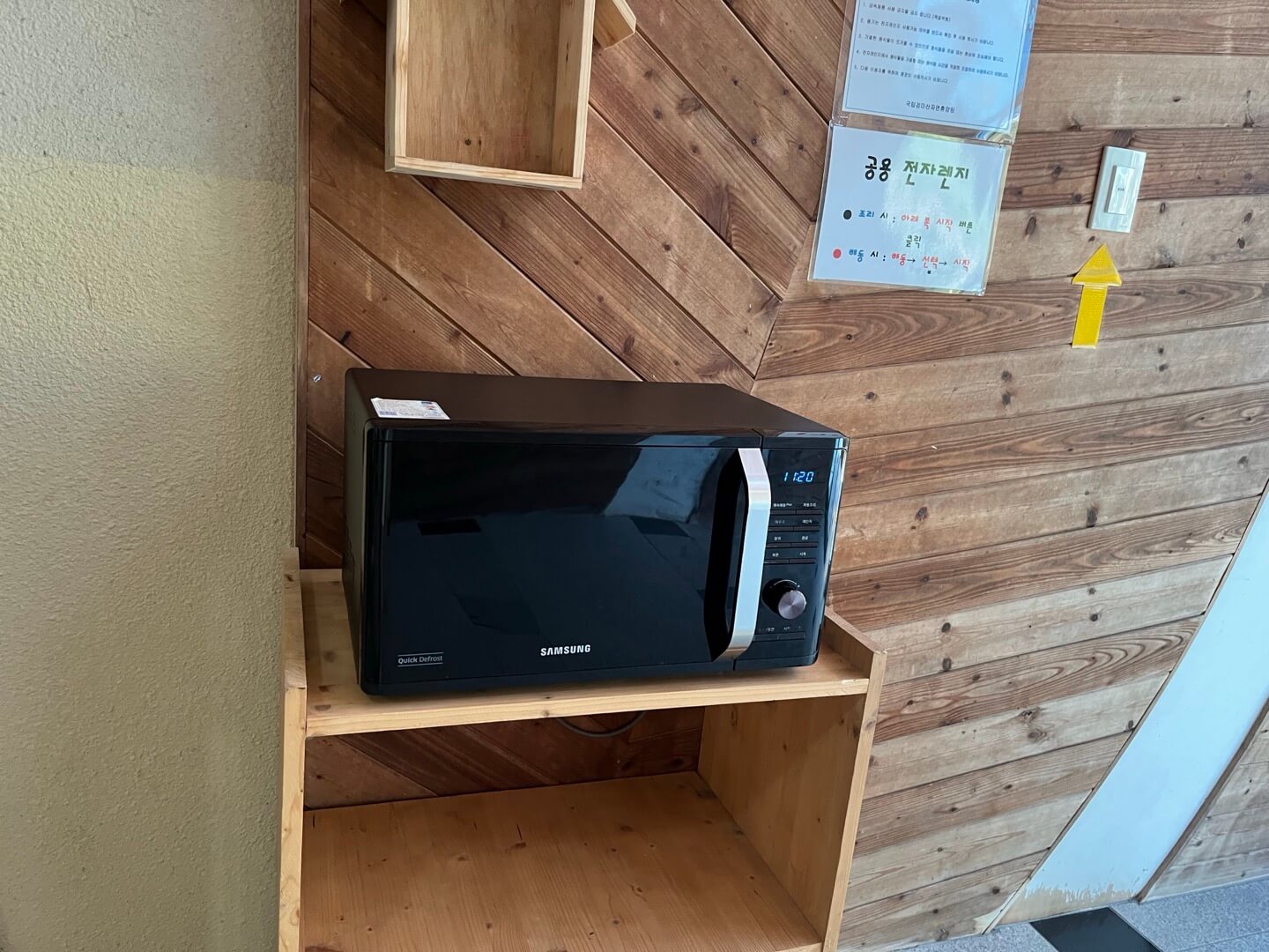 또 하나 다른 리조트보다 좋았던 점이 왼쪽 사진의 전자렌지였습니다. 대형 리조트에도 각 방에는 물론 전자레인지 사용을 하기 위해서는 엘리베이터를 타고 몇 층이나 내려가서 사용하는 경우가 많았는데, 여기는 건물 자체가 작았고 객실이 1층이어서 몇 걸음 밖에 전자레인지가 비치되어 있어 아주 편리하게 이용할 수 있었습니다.
