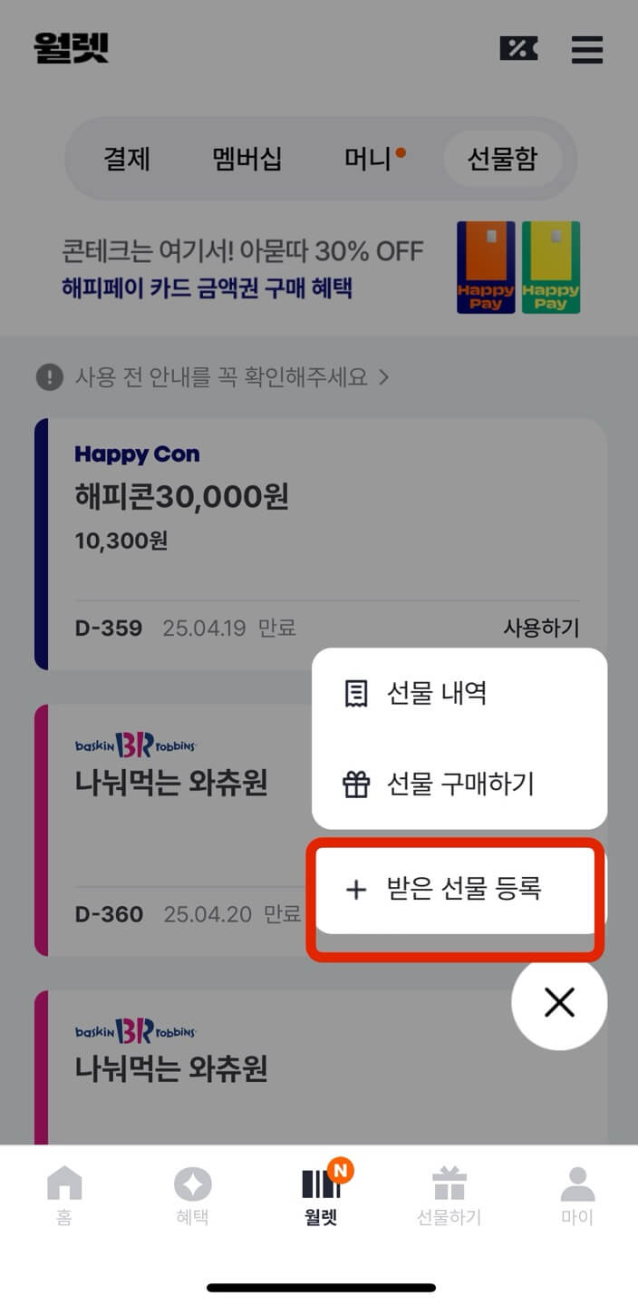 • 배스킨라빈스 기프티콘 등록하기(2)