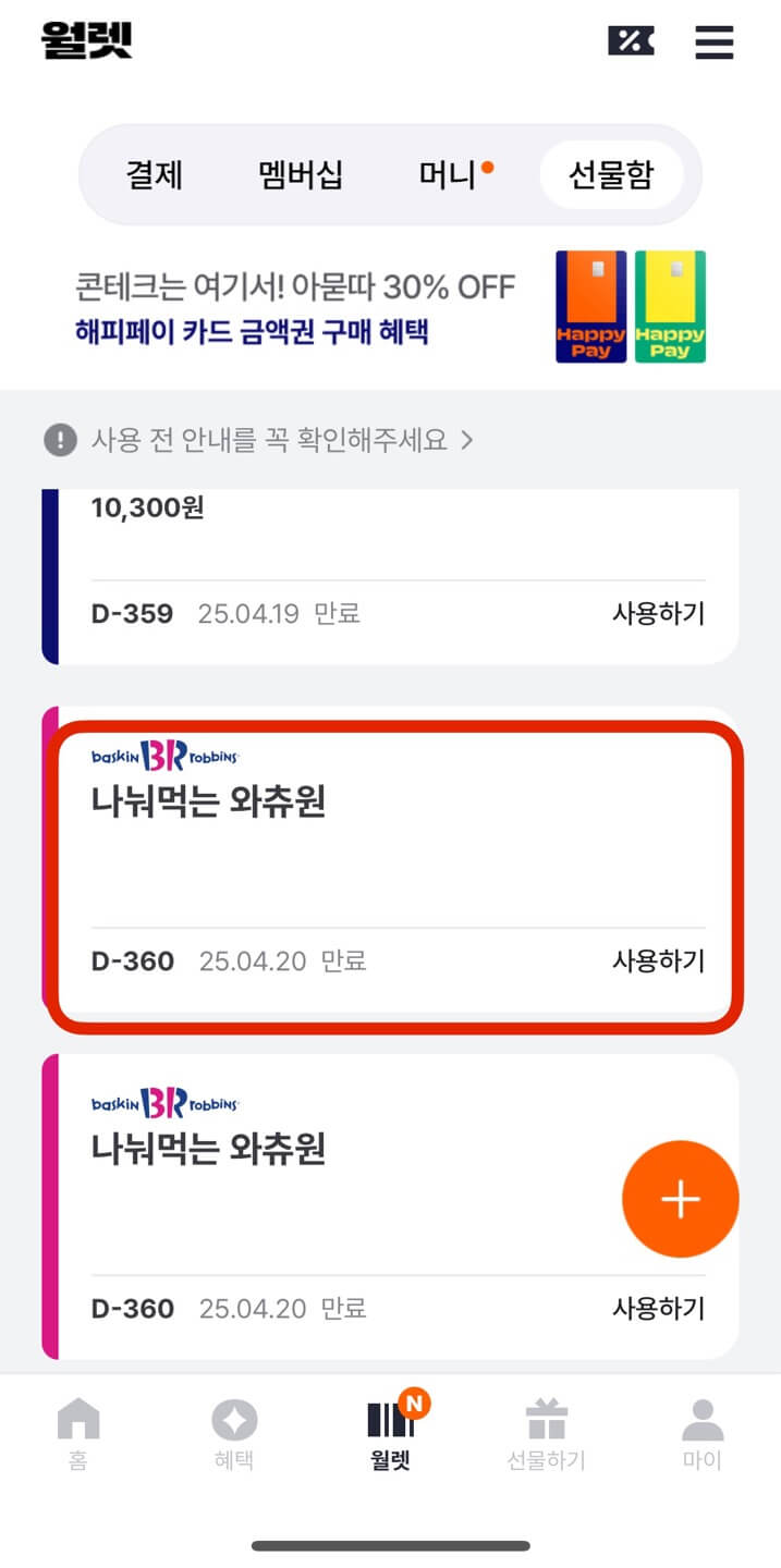 배스킨라빈스 기프티콘 결제방법(해피오더)