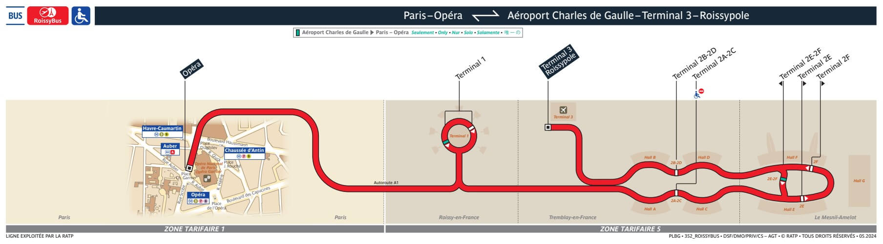 루아시버스(Roissybus)는 샤를 드골 공항 모든 터미널에서 탑승 가능합니다.
