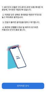 이제 본격적인 스마트패스 ID 등록 차례입니다. 여기에서 주의하실 점은 딱 두 가지인데요, 하나는 위에서 말씀드렸듯이 구여권의 경우 전자칩이 맨 뒤에 삽입되어 있기 때문에 스마트폰을 여권의 맨 뒤에 갖다 대야 합니다. 또 한 가지는 스마트폰이 안드로이드 폰이냐 아이폰이냐에 따라 스마트폰을 갖다 대는 방향이 달라지는데요, 안드로이드폰의 경우 안테나가 중앙에, 아이폰의 경우에는 최상단에 위치해 있기 때문에 꼭 알맞은 방향으로 대야 인식이 됩니다. 인식을 마쳤다면 여권 사진이 있는 면을 펼치고 [다음]을 누릅니다.