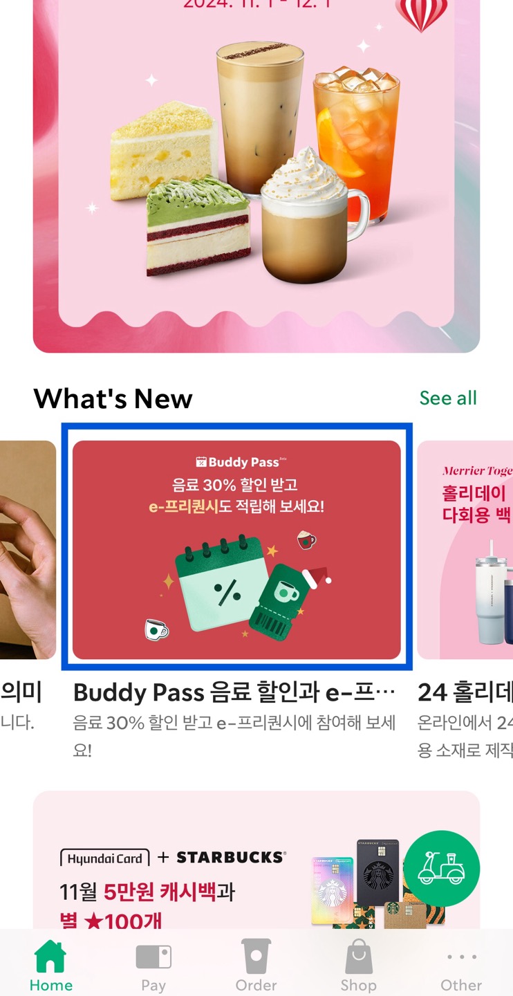 이번 글에서는 스타벅스 Buddy Pass의 이용가격, 혜택, 신청 및 해지 방법에 대해 알아보았습니다. 스타벅스 음료 가격이 저렴하지 않음에도 별도의 요금을 지불하고 별도의 멤버십을 신청하는 게 부담일 수 있습니다. 그런데 연말 프리퀀시를 매년 이용하는 분들이라면 한 달만이라도 Buddy Pass에 가입하는 게 유리해 보입니다. 위에서 알려드린 카드사 캐시백이나 청구할인 프로모션을 이용하여, 저렴하게 버디 패스를 가입해 보는 건 어떨까요.