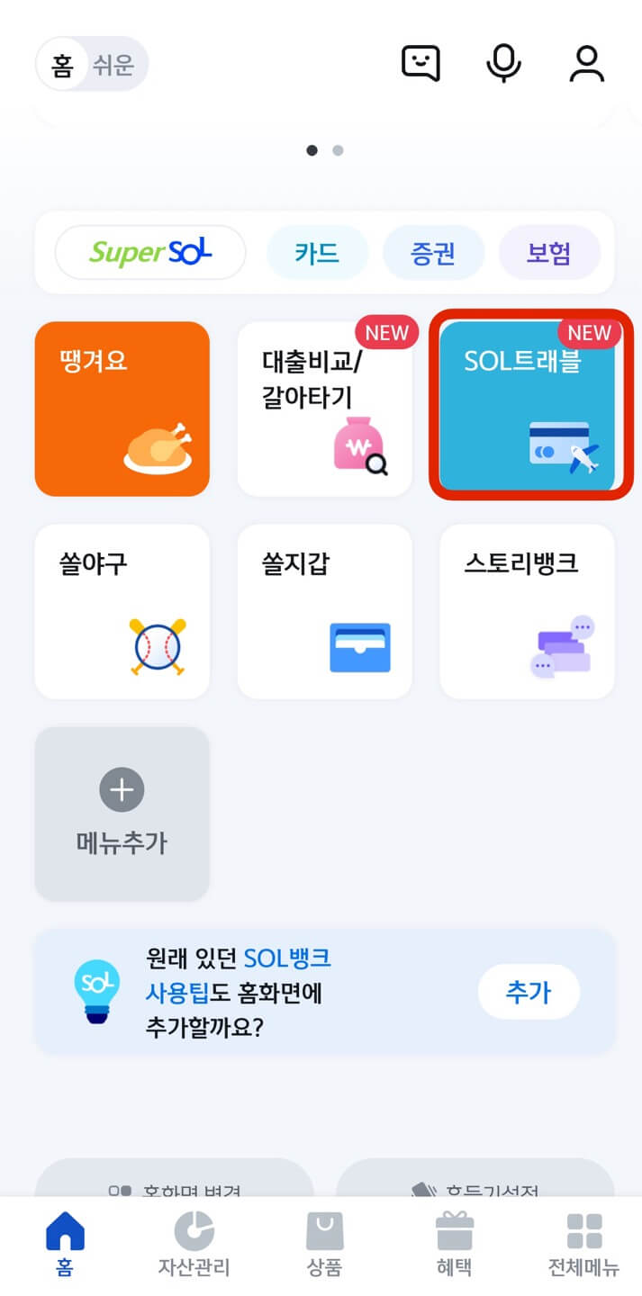 SOL 트래블 체크카드 신청방법