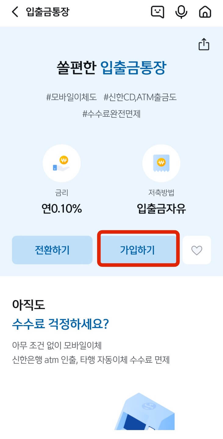 신한 원화계좌 생성 절차