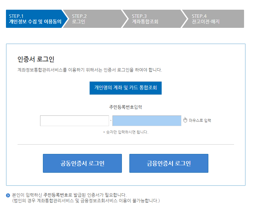 휴면예금을 쉽게 해지하기 위해서는 일단, 계좌정보통합관리서비스 홈페이지에 방문합니다.