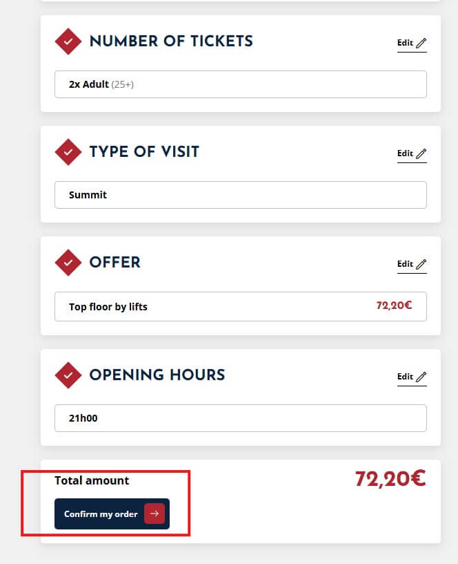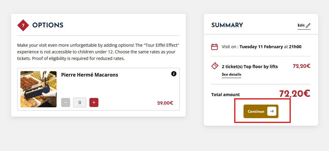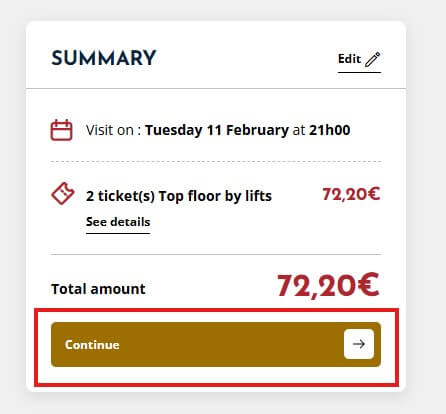 에펠탑 입장권을 공홈을 통해서 구입하는 이유는 다름이 아닌 가격이 저렴해서입니다. 예매대행 사이트와 정상(summit) 입장권은 거의 두 배 정도 차이가 나는데요, 물론 거기에는 부차적인 오디오 가이드나 여행 가이드 안내 서비스 등이 포함되어 있기 때문이므로 기호에 맞게 선택하시면 됩니다.