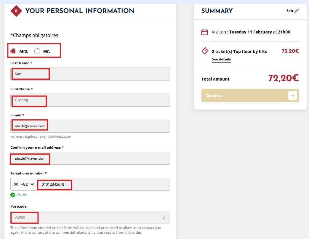 아무 생각 없이 시작된 작은 실수가 그렇게 큰 파장을 불러일으킬 줄은 생각도 못했다. 에펠탑 공홈에서 열심히 입장권 종류와 시간, 이름 등을 입력하고 결제 마지막 단계까지 잘 진행되었다.