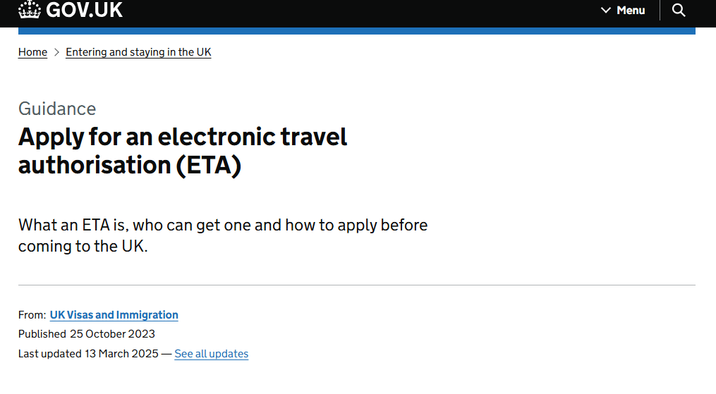 영국 여행을 준비 중이신가요? 지난 올해 1월 8일부터 영국에 여행을 하려는 우리나라 같은 무비자 입국 외국인은 반드시 전자여행허가(ETA, Electronic Travel Authorization)를 여행 전 취득해야 합니다. 이번 글에서는 영국 ETA 신청방법에 대해 상세히 알려드리겠습니다. 어플로도 신청이 가능하지만 오류가 많다는 후기가 많아 이 글은 홈페이지에서 신청하는 방법 중심으로 말씀드리겠습니다.