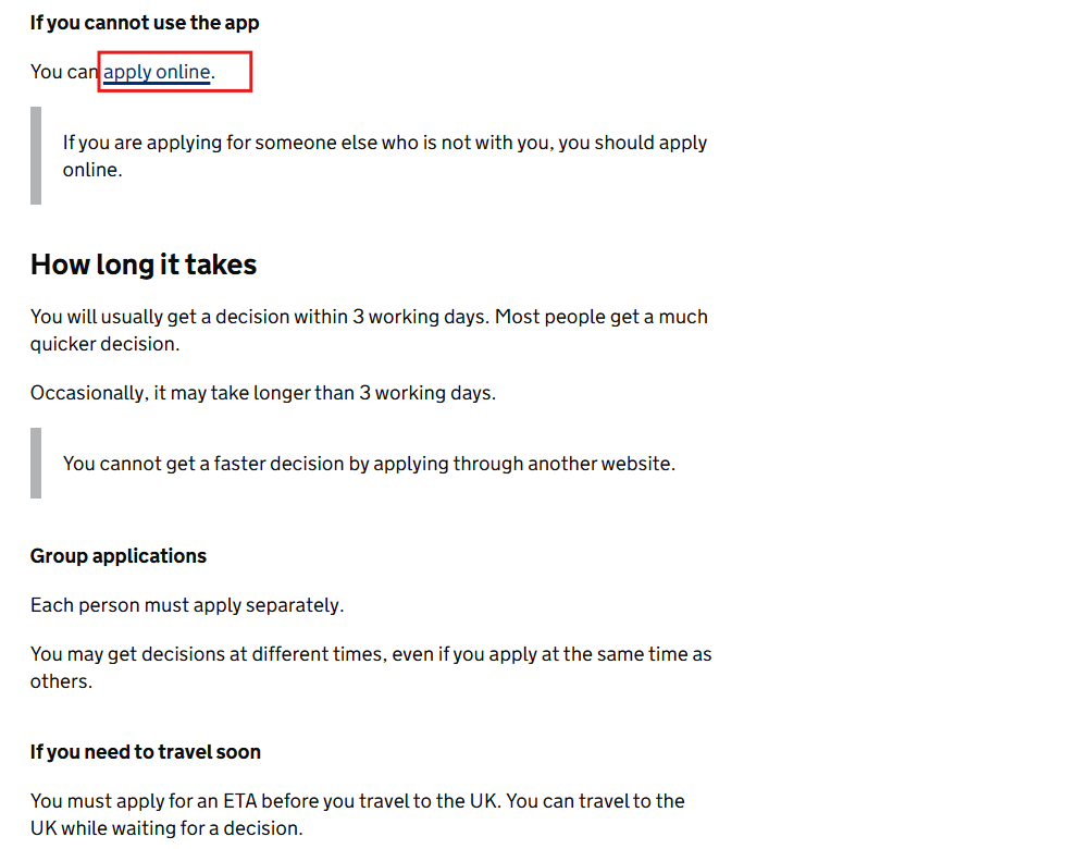서두에서 말씀드렸듯이 영국 ETA를 신청하기 위해 먼저 해당 홈페이지에 접속합니다.