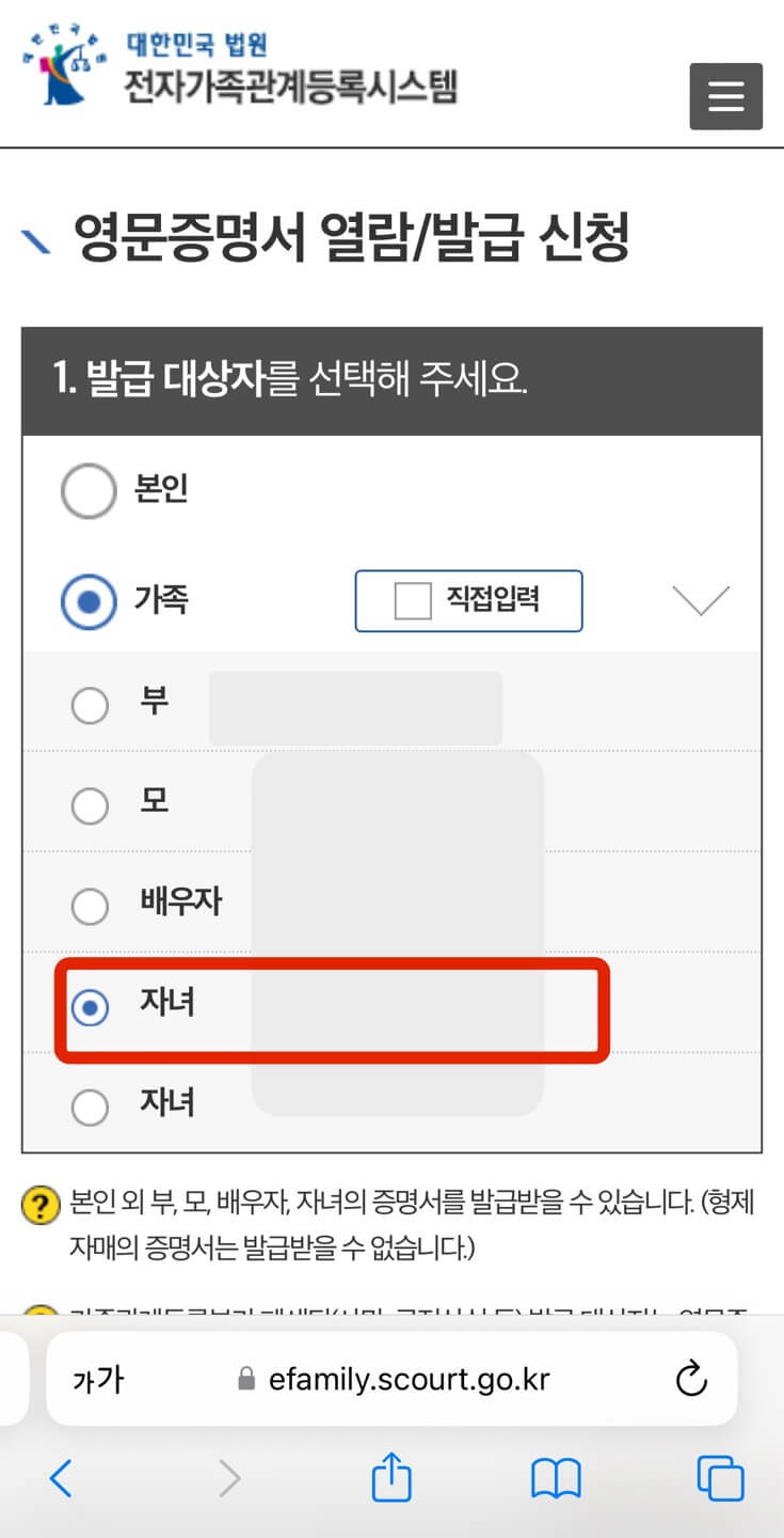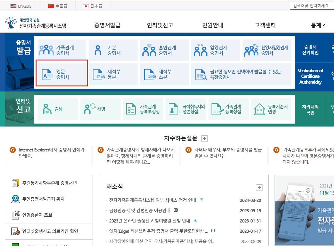 영문 가족관계증명서 발급, 모바일·PC 모두 가능