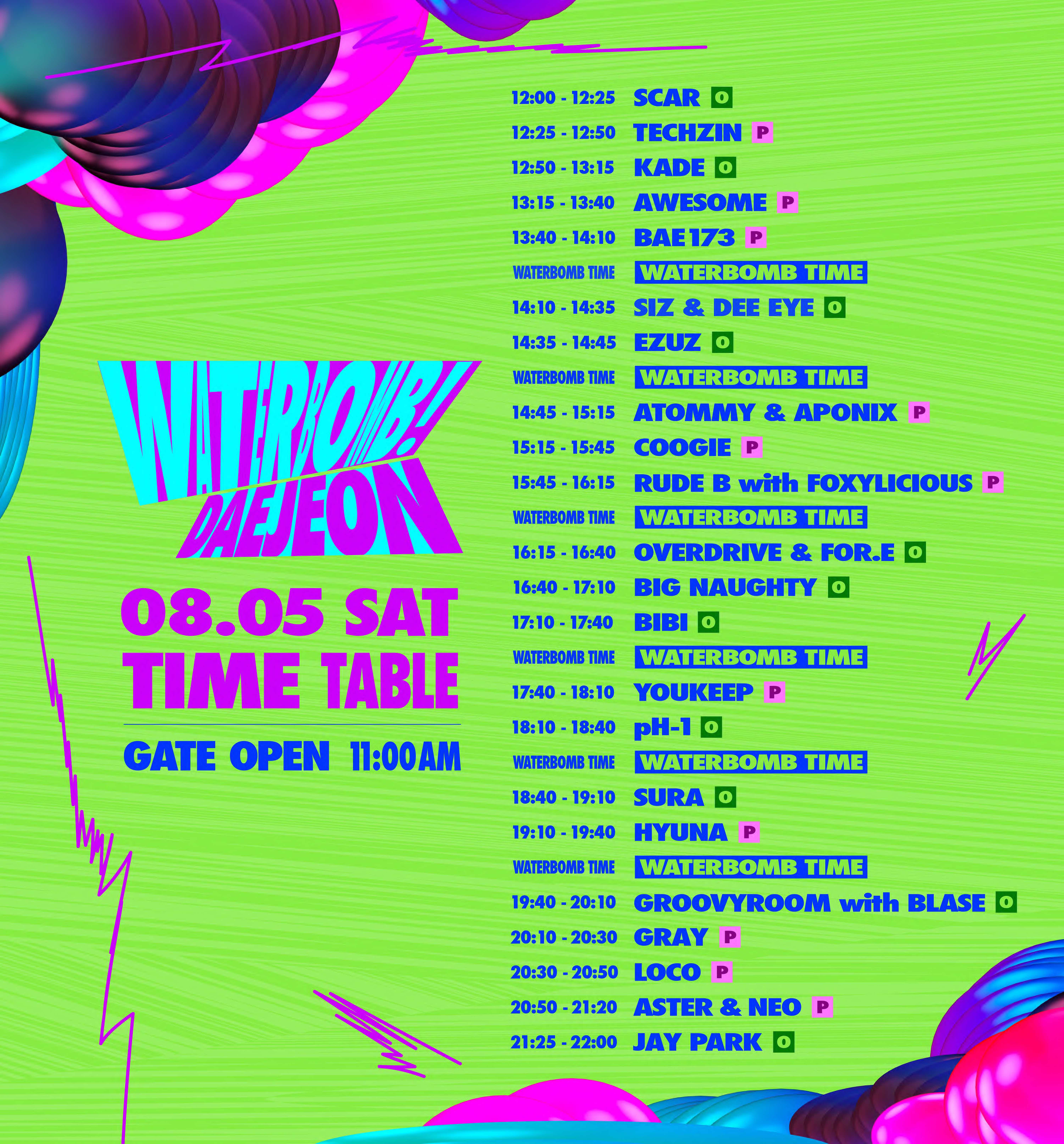 ※ 공연일정 및 라인업은 주최측의 사정에 따라 변경될 수 있습니다. 자세한 사항은 워터밤 홈페이지를 참조 바랍니다.