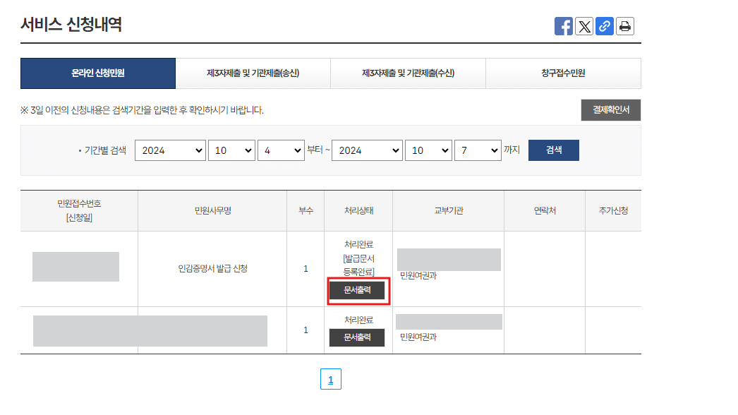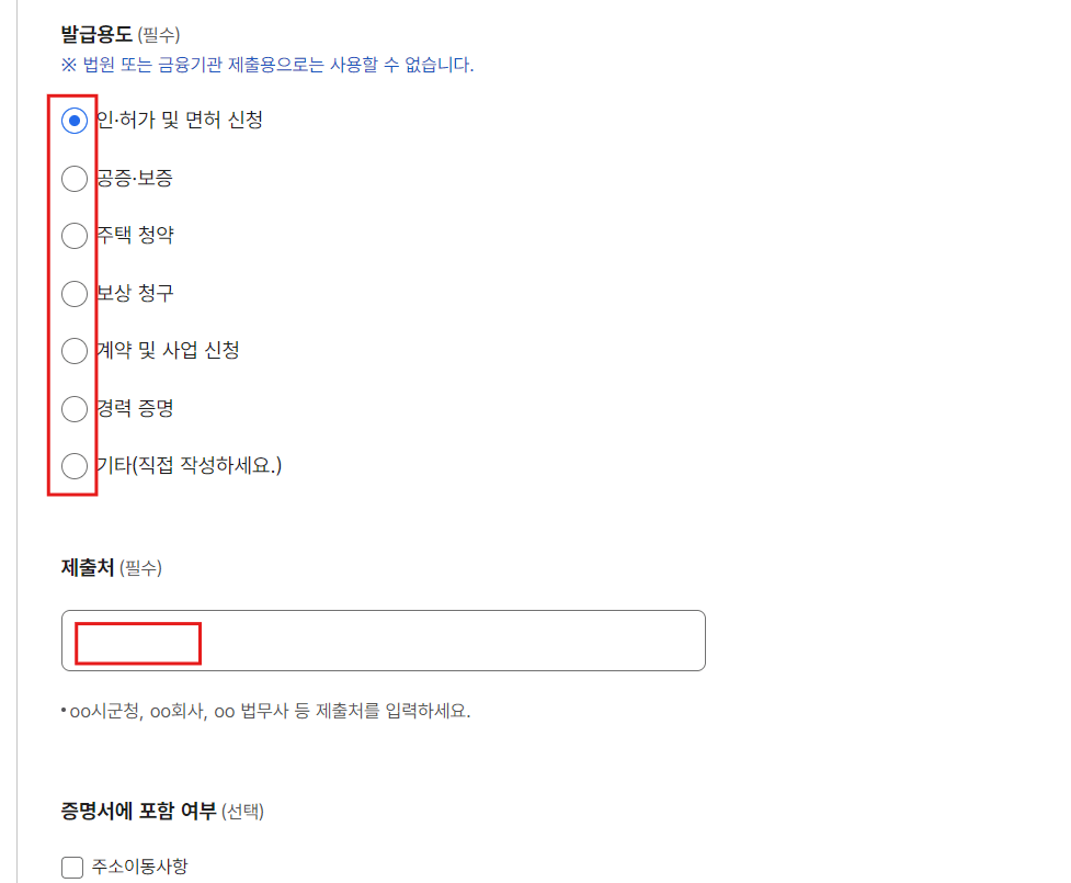 • 법원 또는 금융기관 제출용으로는 발급받을 수 없습니다.