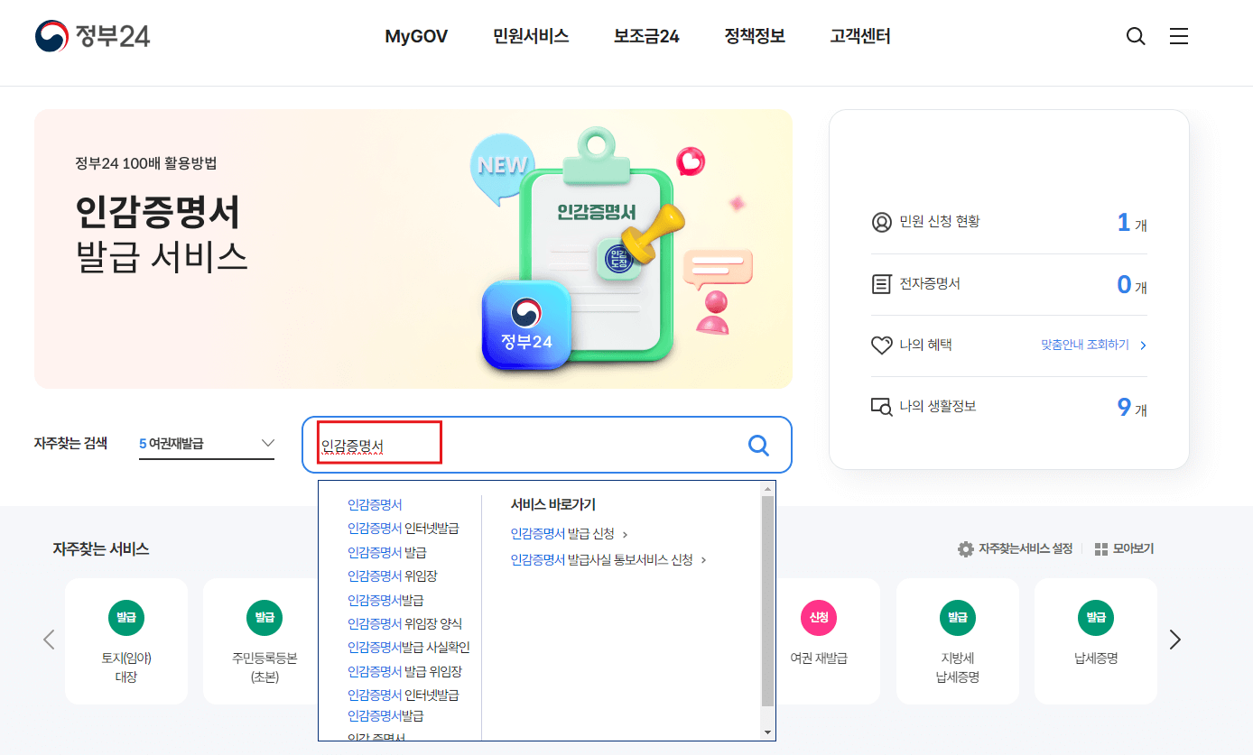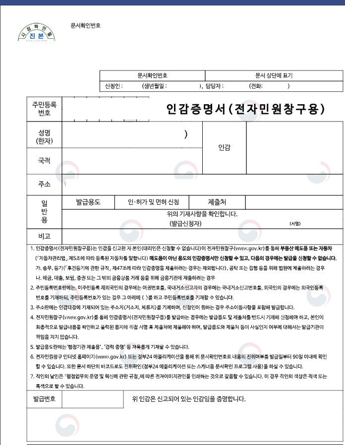 인감증명서 인터넷발급 신청 시 주의사항
