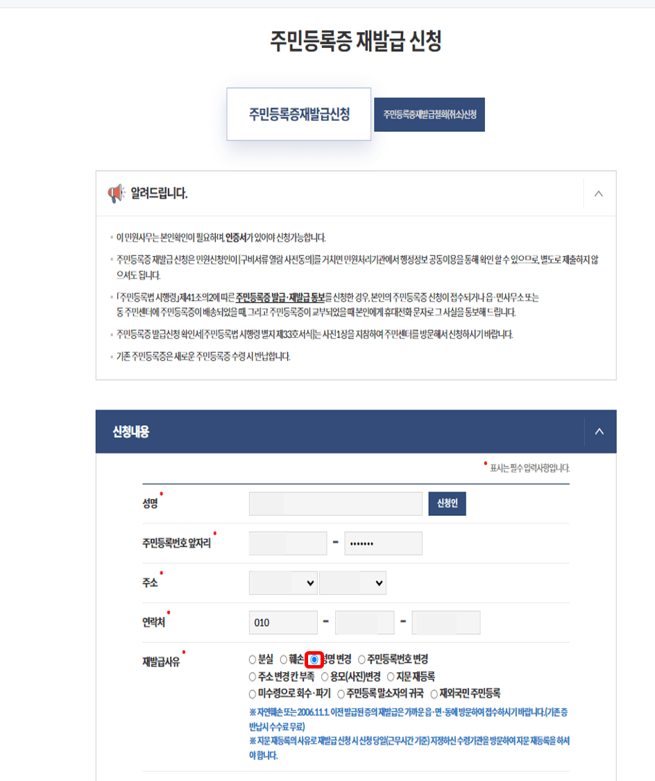 주민등록증 재발급 신청절차