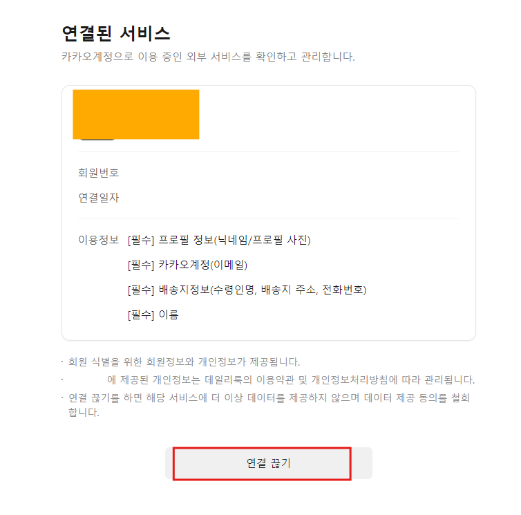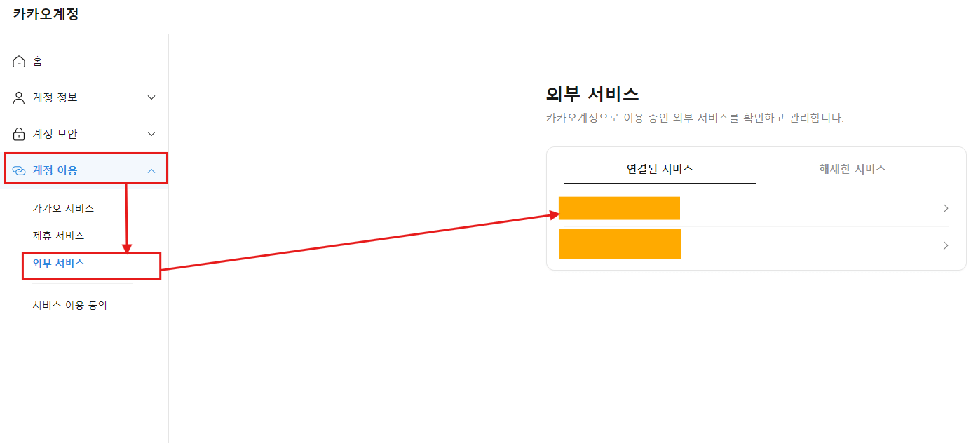 위의 두 방법 중 편한 방법으로 로그인했다면 이제 본격적으로 카카오계정을 통해 가입했던 서비스들을 확인 후 해지 할 차례입니다.