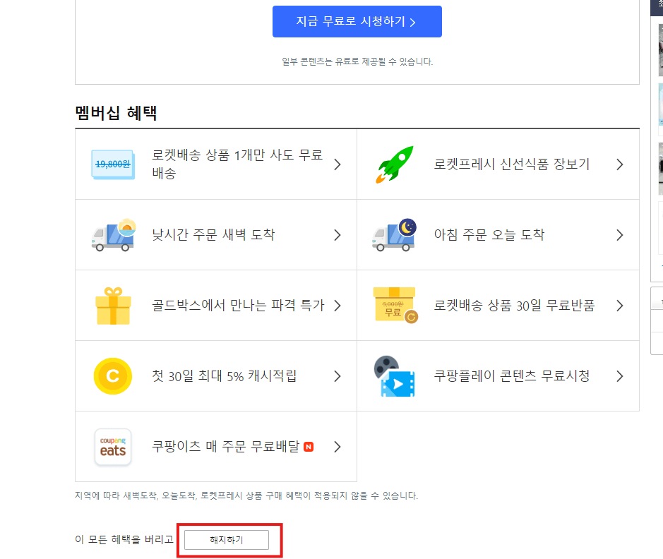 위와 같은 혜택이 매력적으로 느껴져 가입을 하고자 한다면 어떻게 해야 할까요? 쿠팡의 장점 중 하나인 간편성 덕분에 가입 및 해지도 간단합니다. 1분이면 끝입니다.
