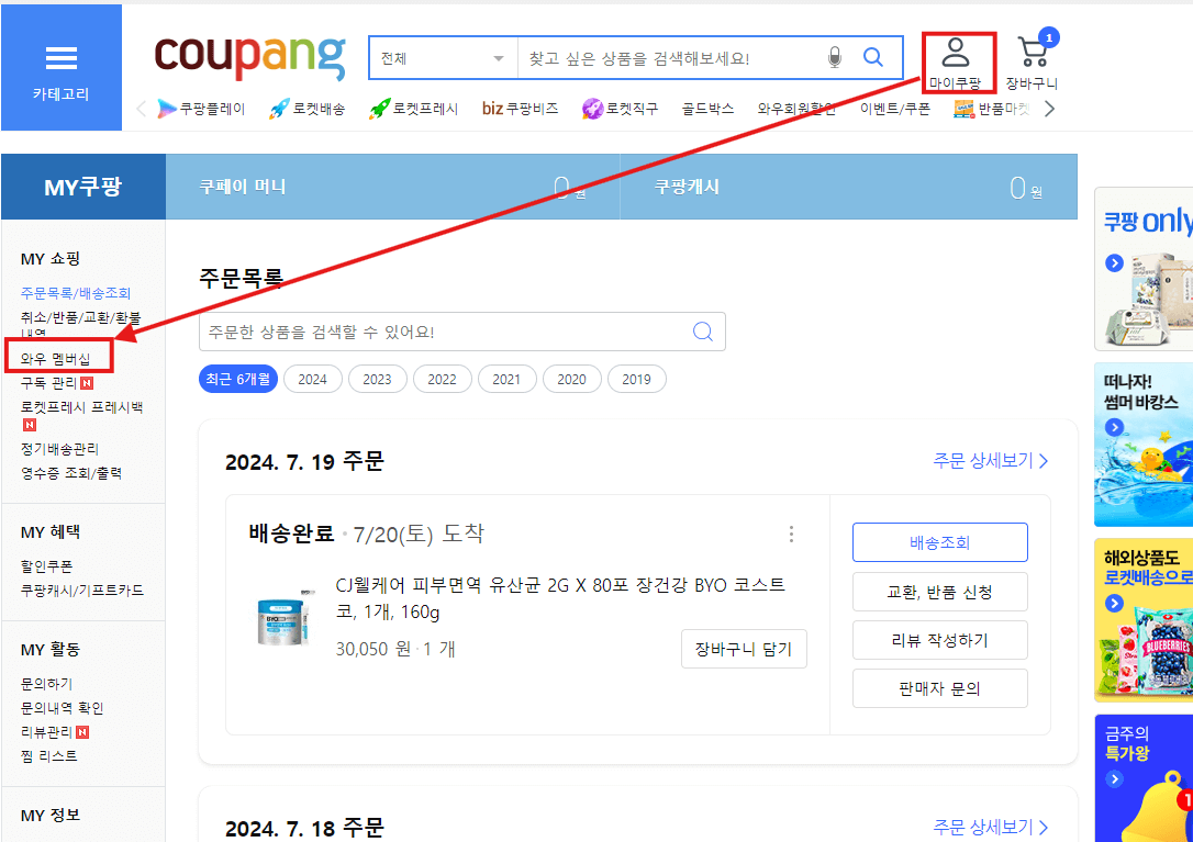 먼저 쿠팡 와우에 가입하기 위해서는 당연한 말이지만 쿠팡 홈페이지에 접속해야하겠죠.