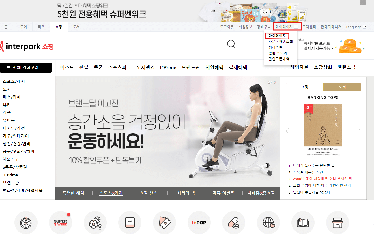 당연한 이야기지만 인터파크 쇼핑 홈페이지에 들어갔다면, 일단 로그인을 진행합니다.