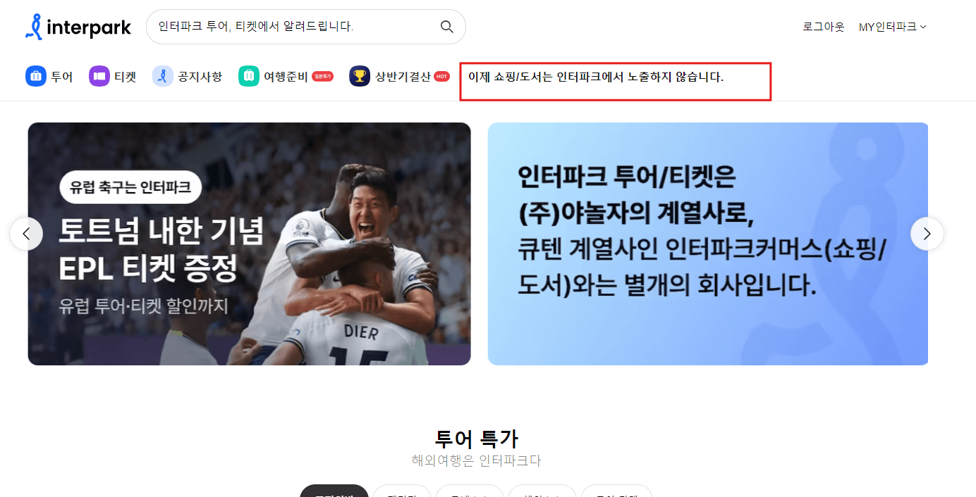 먼저, 일러둘 점은 인터파크쇼핑도 큐텐 계열임이 보도되자 서둘러 인터파크에서는 투어/티켓을 담당하는 기업은 ㈜야놀자 계열로서 쇼핑/도서를 담당하는 큐텐과는 별개의 회사임을 밝혔습니다. 현재는 인터넷 검색창에 '인터파크'를 검색하면 '인터파크 쇼핑'이 메인화면에 표시되었던 예전과 달리 '인터파크 투어/티켓'만 표시되고 '인터파크 쇼핑'은 아예 누락시켜 표출하고 있습니다.