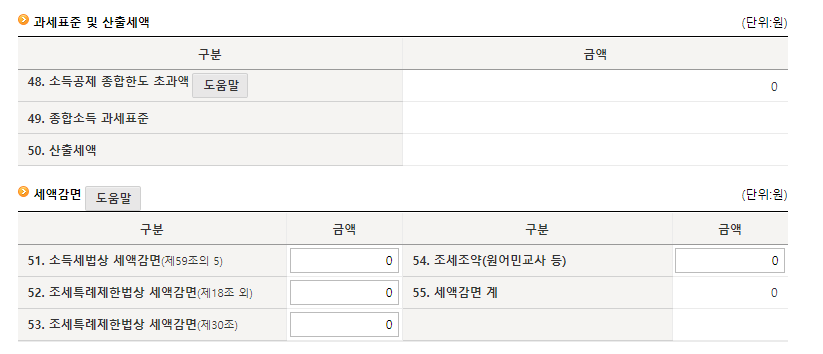 더 아래로 내리면 8번 그림과 같은 [세액공제]항목에서 6번과 동일한 방법으로 입력하면 9번에 자동으로 계산되어 표시됩니다.