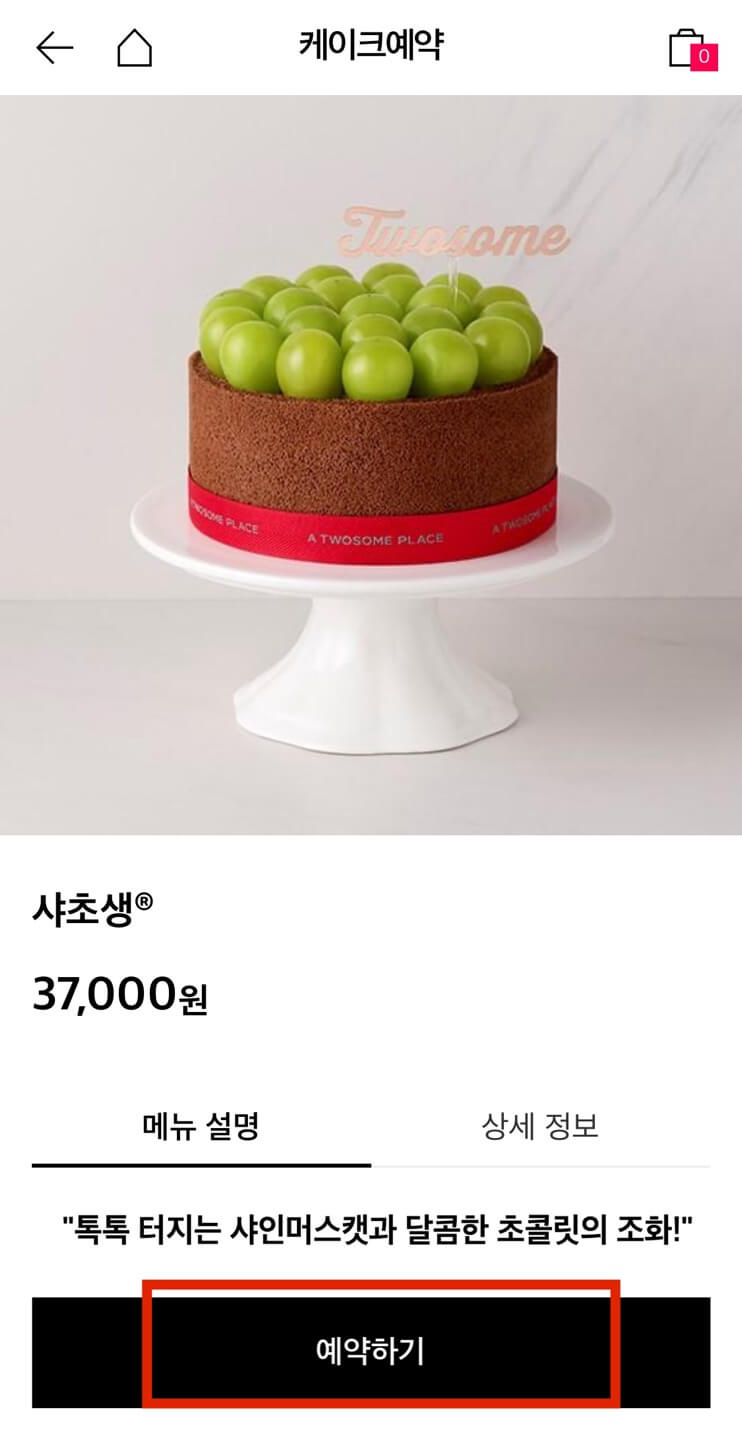 상품권을 등록했다면 이제 맛있는 케이크를 예약할 차례입니다. 케익 상품권을 받았다고 하더라도 상품권 가격 이상으로 구입만 하면 메뉴 변경은 가능한데요, 예를 들어 3만 원 짜리 모바일 상품권을 받았다고 하면 3만원 상당의 커피든 아이스크림이든 교환이 가능합니다. 다만, 상품권보다 적은 금액의 메뉴를 구입할 경우 차액은 반환받을 수 없으므로, 그 점만 참고하시면 됩니다.