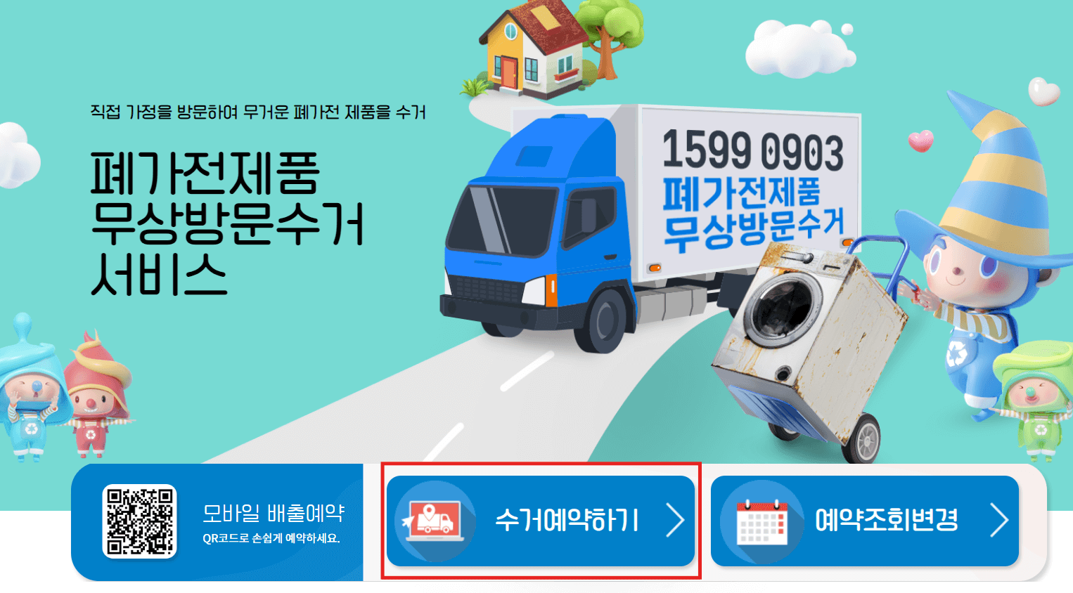 폐가전 무료수거를 신청하기 위해서는, 폐가전 무료수거 홈페이지에 우선 접속합니다.