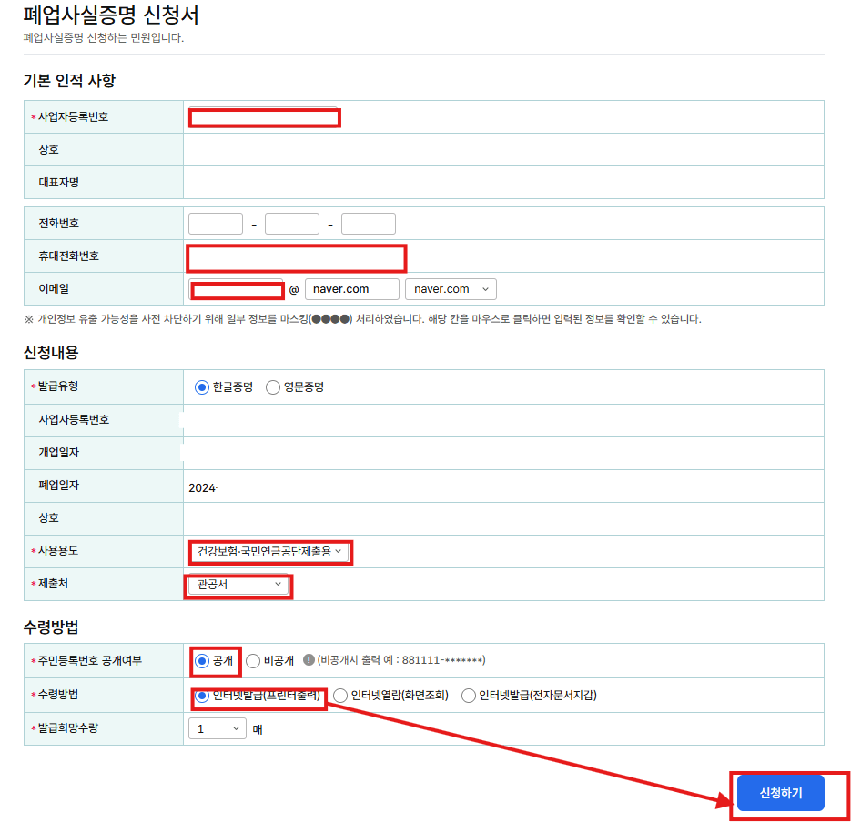 폐업사실증명 인터넷 신청, 발급 방법