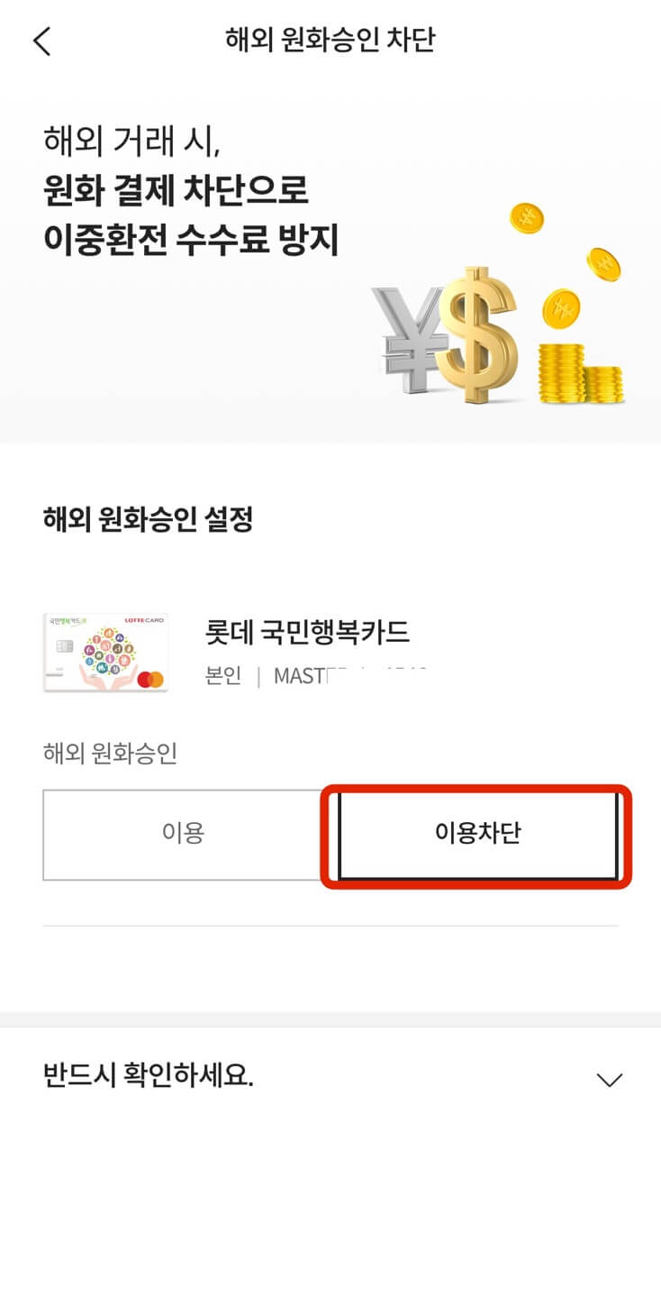 - 롯데카드 해외 원화결제서비스 차단 절차