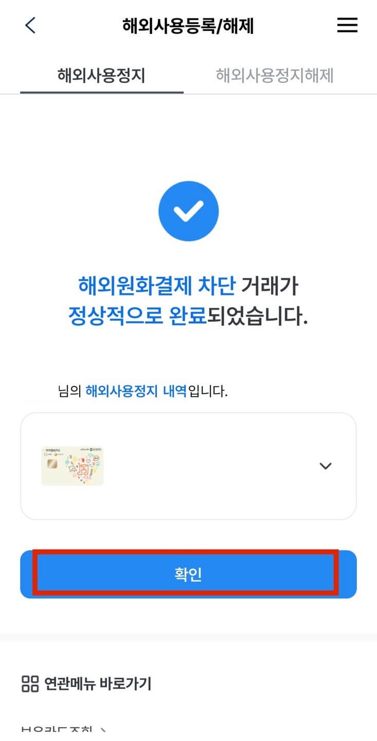 - 우리카드 해외 원화결제서비스 차단 절차