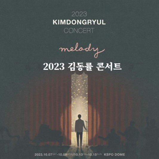 공 연 명: 2023 김동률 콘서트 'Melody' 공연장소 : KSPO DOME (올림픽체조경기장) 공연일시 : 2023년 10월 7일(토) ~ 9일(월) / 10월 13일(금) ~ 15일(일) 금 오후 8시 / 토, 일, 월 오후 6시 티켓가